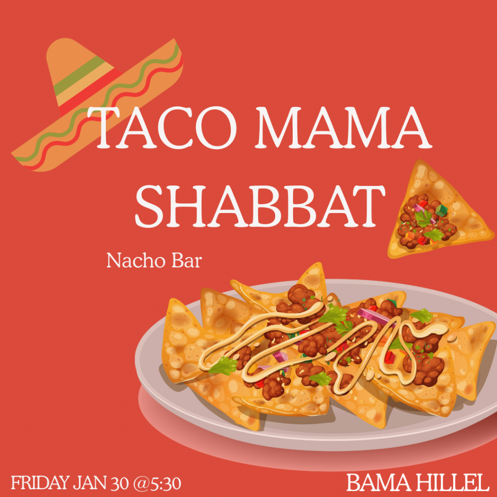 Please join us for Taco Mama Nacho Bar Shabbat on January 30th at 5:30pm at Bama Hillel! Sign up using the link below. See y’all there!